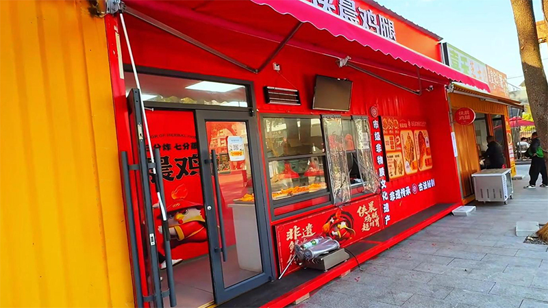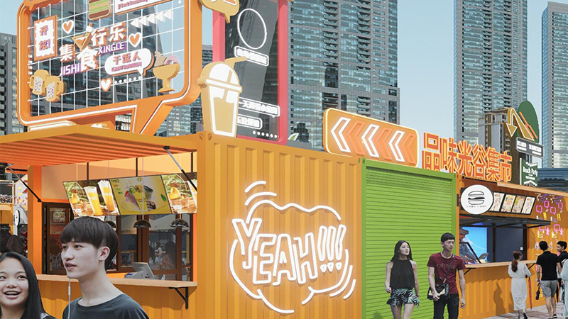 由咱們博客斯定制的赤壁華潤啤酒廣場集裝箱式夜市“五一”火爆出圈